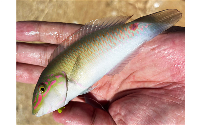 キャッチしたオグロトラギス(提供:TSURINEWSライター・アングラー「K」)時間が経過し、妻の体力も考慮してそろそろ釣りを終了。これで今回の旅行で釣れたのは計5魚種(うち4魚種が初魚種)という大満足の結果となりました。
